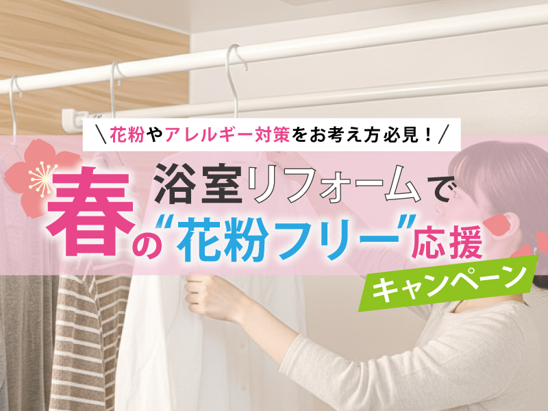 春の訪れとともに気になるのが花粉症。本格に花粉が飛び出す前に、浴室リフォームで家族の衣類を花粉から守る絶好のタイミング!“花粉フリー応援”キャンペーンでお得に快適を手に入れませんか?
