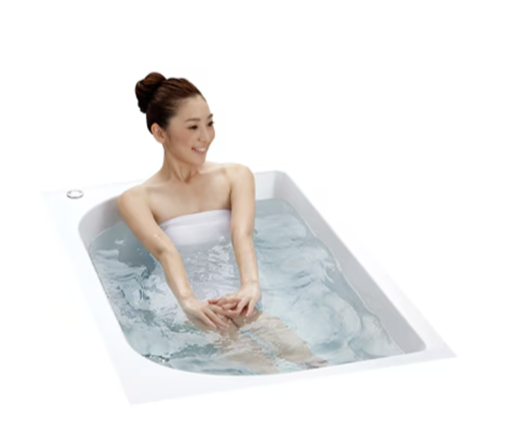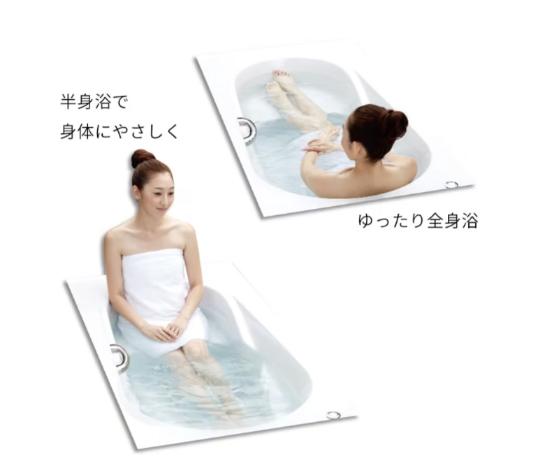半身浴で体を温めてから全身浴へ移行することで、血流や発汗を整える効果も期待でき、美容・冷え対策としても優秀。