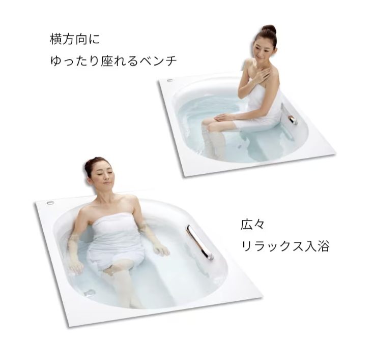 ベンチ浴槽とは、浴槽内に「腰掛けられる段差=ベンチ」が設けられた浴槽のこと。