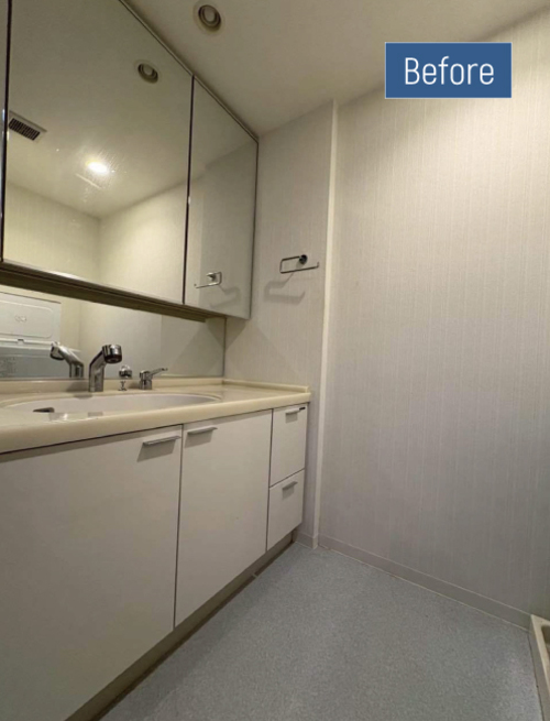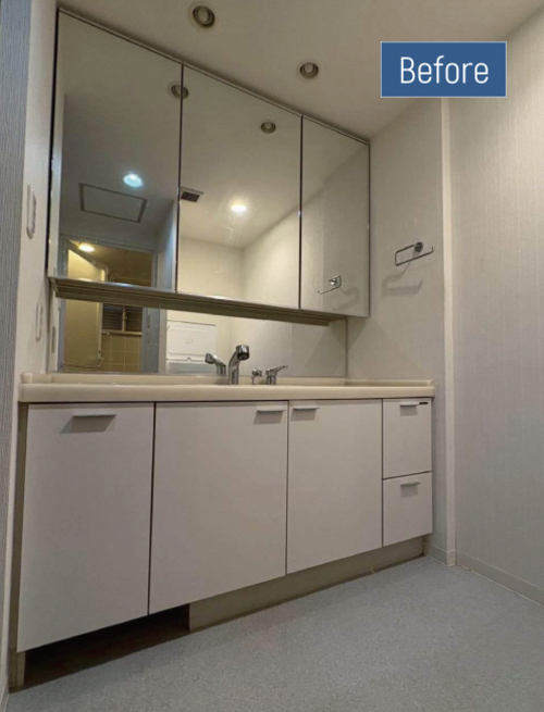 既存の洗面台は間口が大きく、条件に合う商品が限られていましたが、タカラスタンダードにてご希望に合致する商品が見つかったため、浴室とあわせてご提案いたしました。