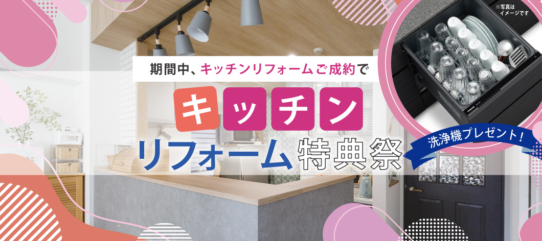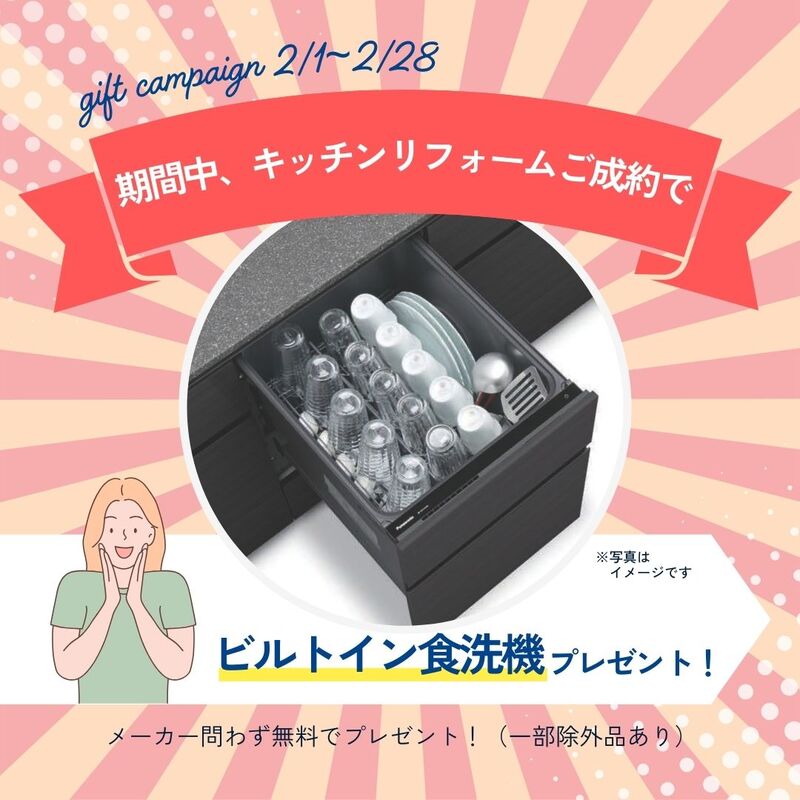 期間中、キッチンリフォームをご成約いただいた方に『ビルトイン食洗機』をプレゼント!