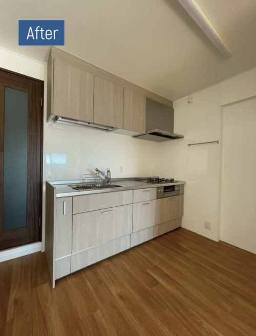 ご主人がお仕事を引退され、お孫さんが生まれるご予定ということで、「遊びに来たときに過ごしやすい家にしたい」というご希望を伺い、設備の経年劣化も踏まえてリフォームを進めました。ご主人も家事をされるようになったため、ご夫婦で並んで作業しやすいキッチンを目指し、シンク位置の調整や動線の見直しを行っています。