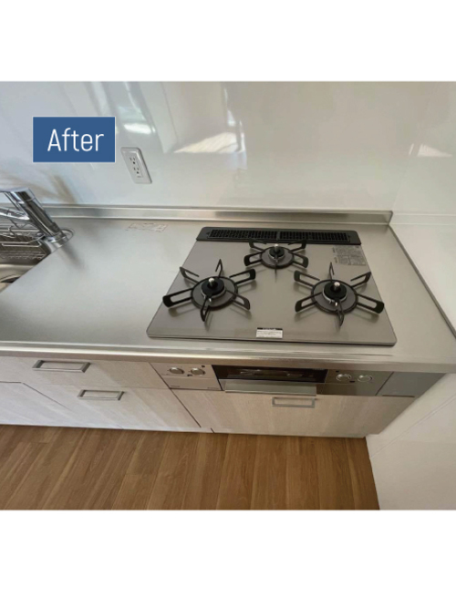 ショールームで気に入っていただいた吊戸棚のクイックパレットは、洗い物をさっと置ける便利さから採用されました。また、コンロはレールがしっかりしたタイプにこだわってご選定いただき、設置後も使い心地にご満足いただけています。
