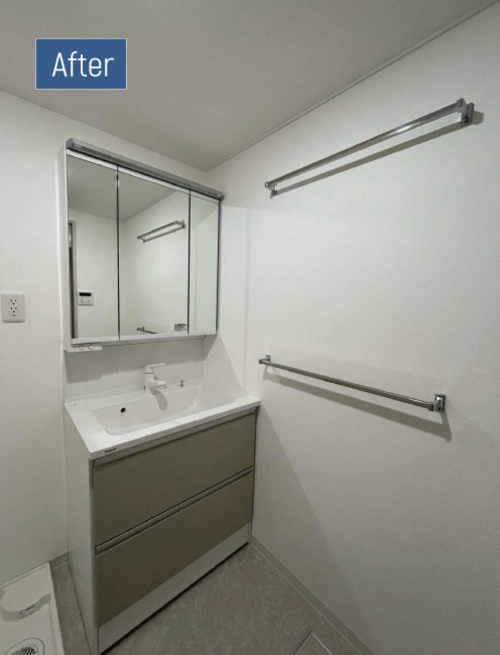 既設の600㎜幅の洗面台は大きな不便はないものの「少し小さい」と感じておられたため、サイズアップが可能で、引き出し式収納でスペースを有効活用できるシーラインをご提案しました。金額を抑えつつ、使い勝手をしっかり向上できる点も採用の決め手となりました。