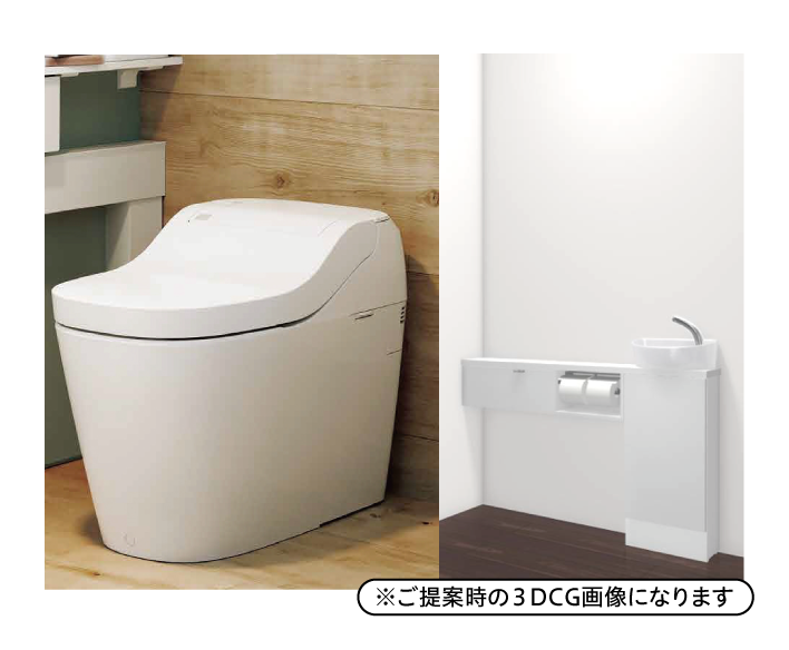Panasonic アラウーノS160を採用いただきました。※手洗い器は LIXILキャパシア。